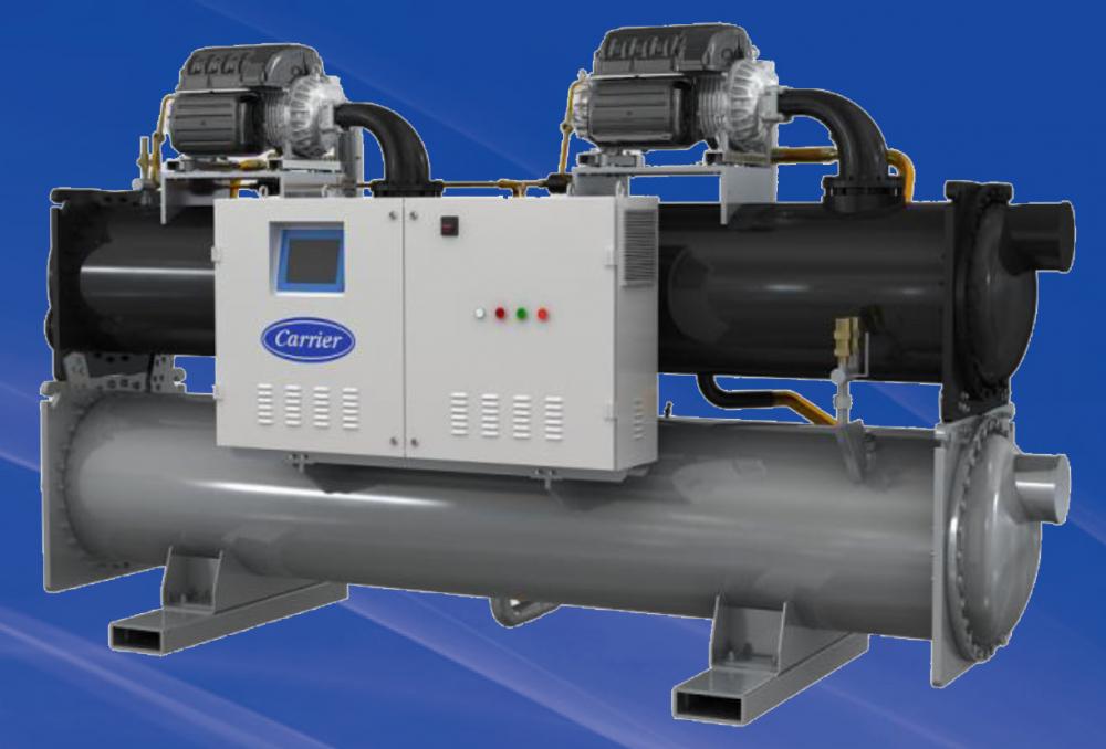 В модельном ряду чиллеров Carrier 19PV с водяным охлаждением диапазон производительности составляет от 550 до 1 600 кВт. Агрегаты отличаются наиболее низкими затраты в ходе эксплуатации среди всех аналогичных моделей. В агрегатах используются безмасляные компрессоры Turbocor VTT на магнитном подвесе, обеспечивающие новый уровень эффективности, надежности и производительности.
